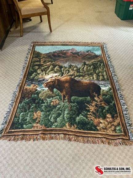 LOT 151 - Wildlife afghan with a moose on it (51”X 72”)