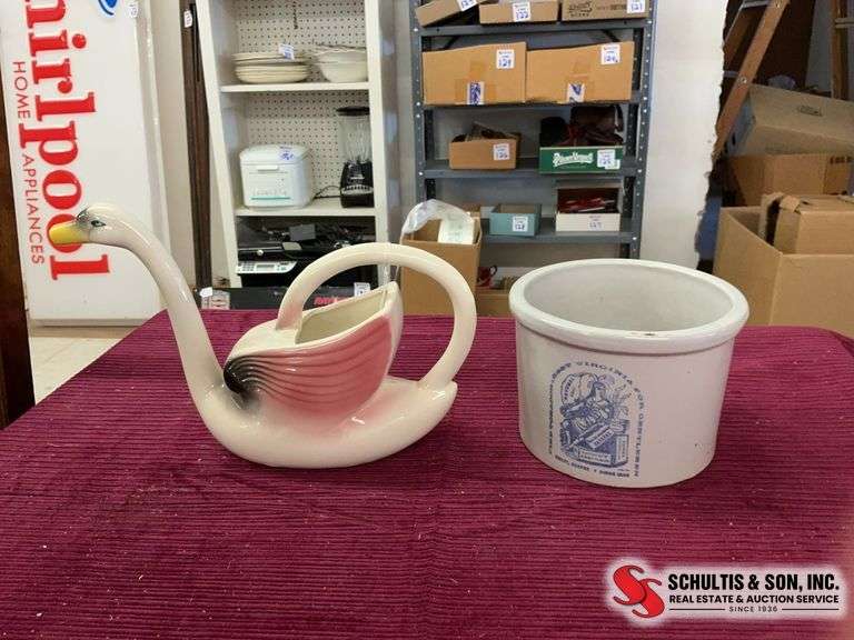 LOT 324 - Nouvelle swan watering pitcher and a “Virginia” tobacco jar