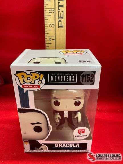 Funko Pop Movies figure Dracula (1152), part of Universal Monsters series. Walgreens-exclusive stickered box with minor shelf wear.