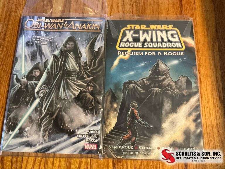 Two Star Wars comics: 'Obi-Wan & Anakin' (Marvel) and 'X-Wing Rogue Squadron' (Dark Horse). Includes protective covers.
