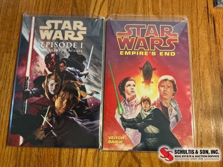Two Star Wars graphic novels including 'Episode I: The Phantom Menace' and 'Empire's End.' Both are in plastic sleeves and show no visible major wear.