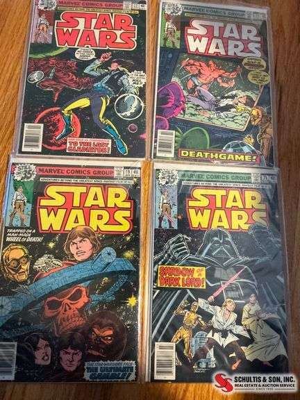 Four bagged Marvel Star Wars comics, issues 18-21, featuring covers by Marvel Comics Group. Shows light wear.