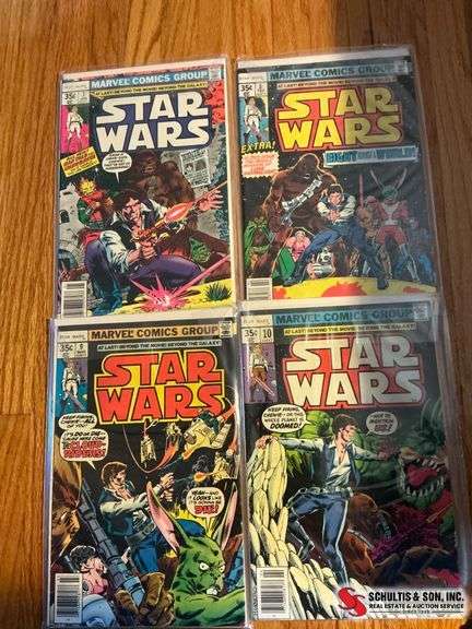 Four Star Wars comic books from Marvel Comics Group, issues 6-10, 35-cent covers, bagged and boarded, condition appears intact based on images.