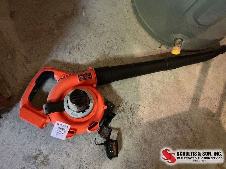 Black+Decker 20V cordless blower with rechargeable battery and charger. Lightweight design and plastic construction. Tested; working.