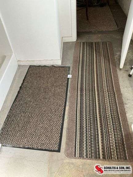 Two rectangular floor rugs including one with a woven texture and one with striped patterns. Dimensions and condition details available upon request.