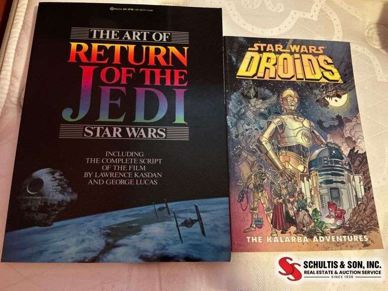 Includes 'The Art of Return of the Jedi' script book and 'Star Wars Droids: The Kalabra Adventures' comic. Minor handling wear.