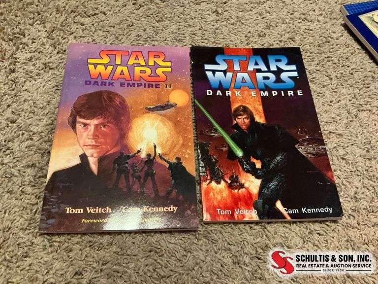 Two Star Wars graphic novels: 'Dark Empire' and 'Dark Empire II' by Tom Veitch and Cam Kennedy. Published by Dark Horse Comics. Paperback editions, showing minor shelf wear. Additional details available upon request.
