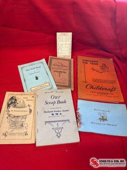 Vintage booklets, including literature, educational, and religious-themed items. Some titles include illustrations and certificates.